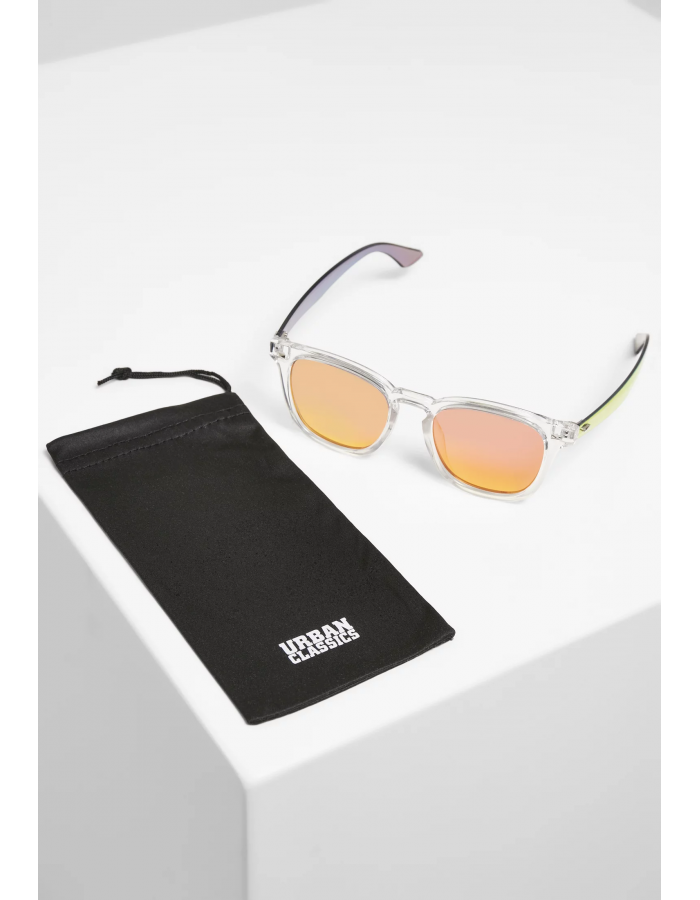 Pro ty z vás, kteří to mají rádi barevné. Tyto sluneční brýle září dokonale sladěnými barvami. Jejich široký plastový rám se průhledně třpytí a zcela obepíná obdélníkové brýle. Velká skla jsou tónovaná a dodávají se s ochranou proti slunci UV 400 a filtrem kategorie 3.