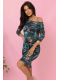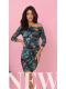 Sportowa sukienka z dekoltem typu łódka i tropikalnym wzorem 3D liści i motyli. Wygodna, elastyczna i stylowa – idealna na lato. Produkt polski. Marka Numoco.