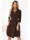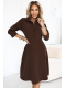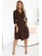 Elegantní čokoládová midi košilové šaty značky Numoco s límečkem, 3/4 rukávem a vázáním vzadu. Šaty s kapsami, ideální do práce, na setkání i na každý den. Polský produkt.