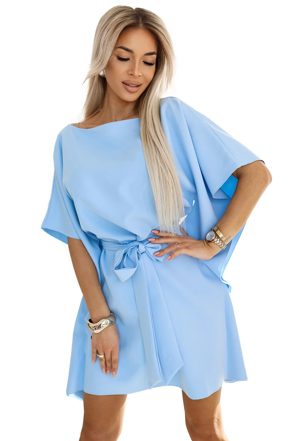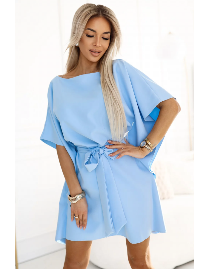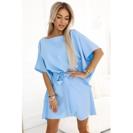 287-36 SOFIA Sukienka motyl z wiązaniem w pasie - pastelowy BŁĘKIT S/M