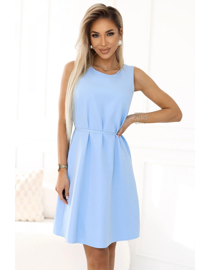 Lehká, ženská a plná svěžesti – tato světle modrá šaty bez rukávů od Numoco jsou ideální volbou pro moderní ženy, které si cení pohodlí a stylu v jednom.