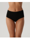 To figi damskie o najbardziej uniwersalnym charakterze, jaki możesz sobie wyobrazić. Majtki w kolorze czarnym są bardzo szerokie po bokach i wysoko zachodzą na brzuch, a w talii wykończone są miękką i nieuciskającą ciała gumą ozdobioną z lewej strony logo Atlantic.