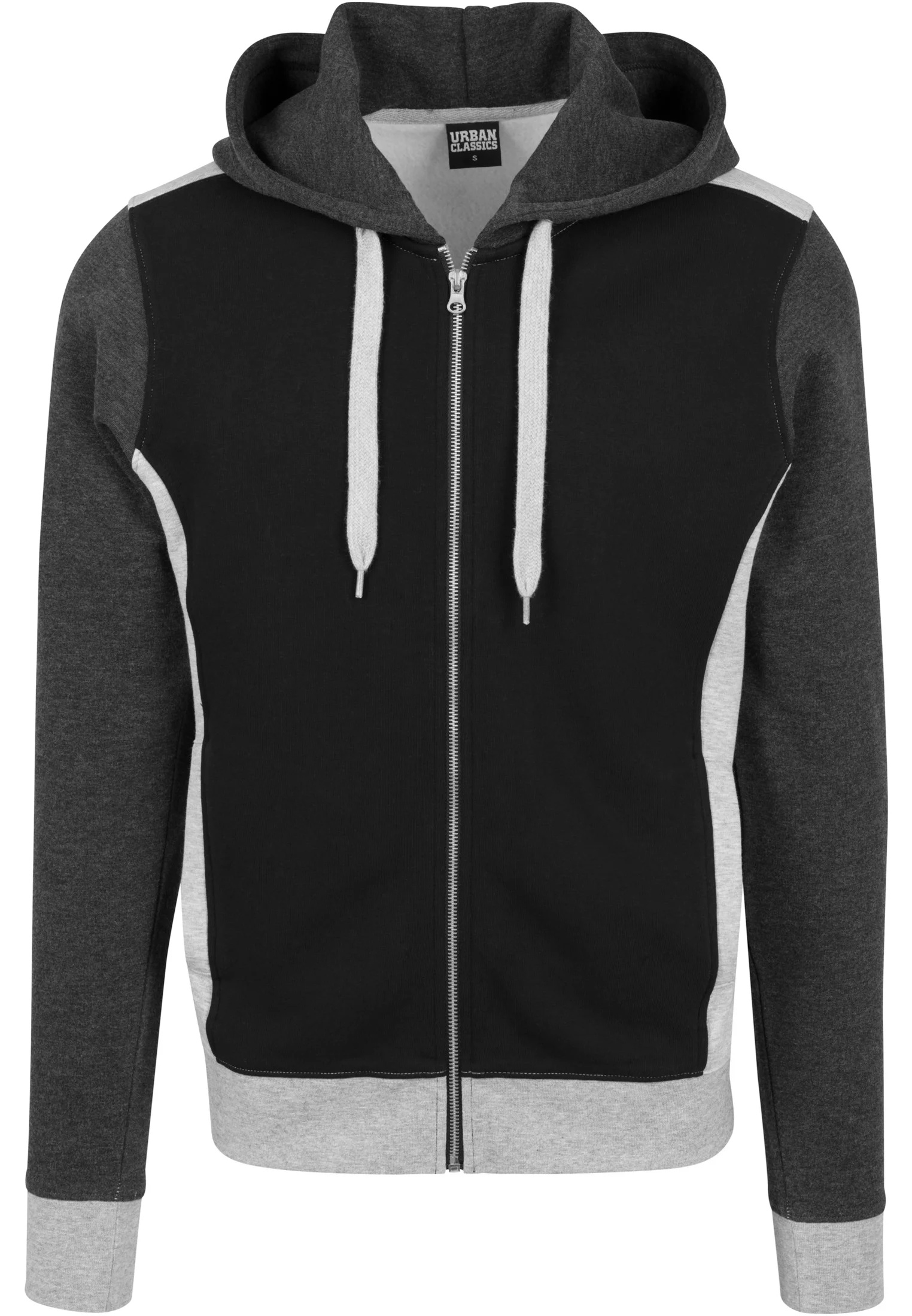 3-tónová kapuce na zip s kapucí černá/šedá/uhlová S