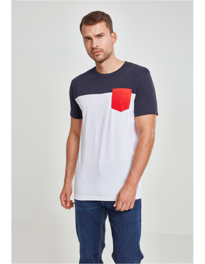 3-tónové kapesní tričko bílá/námořnická/ohnivá červená