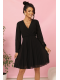 Elegantní černé šaty z šifonu s překládaným výstřihem a plisovaným spodním dílem. Značka Numoco, výroba polská. Ideální na večerní výlety a speciální příležitosti.