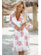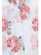 Jemný květinový vzor v odstínech růžové a modré, hluboký výstřih ve tvaru písmene V a dlouhý, průhledný rukáv dodávají celku ženský půvab. Vázání v pase jemně zdůrazňuje siluetu a rozšířený spodní díl vytváří efekt lehkosti a volnosti.