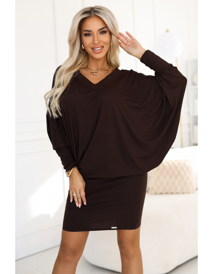 Oversize šaty typu netopýr - moderní komfort v čokoládové barvě.
