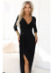 Černé maxi šaty s překládaným výstřihem a 3/4 rukávem | Numoco