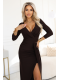 Elegantní dlouhé šaty značky Numoco v barvě čokoládově hnědé. Má zavinovací výstřih, řasení v pase a rozparek na noze, které zdůrazňují ženskou siluetu. Vyrobena z elastického, měkkého materiálu - ideální na svatbu, ples nebo elegantní večírek. Polský produkt.