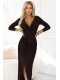 Maxi šaty s překládaným výstřihem a dlouhým rukávem - čokoládově hnědé | Numoco