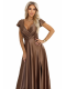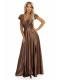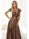Saténové maxi šaty s překládaným výstřihem - Mocha Mousse