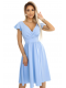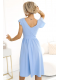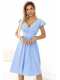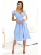 Světle modré midi šaty s překládaným výstřihem a motýlími rukávy. Zdůrazňuje pas, krásně se pohybuje. Ideální na svatbu a výjimečné příležitosti. Značka Numoco. Produkt polský.