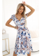 Elegantní midi šaty s květinovým vzorem značky Numoco s překládaným výstřihem do V. Vyrobena z elastického materiálu, má lehké rukávky a zavazování v pase. Polská produkce ideální pro rodinné oslavy a každodenní výlety.