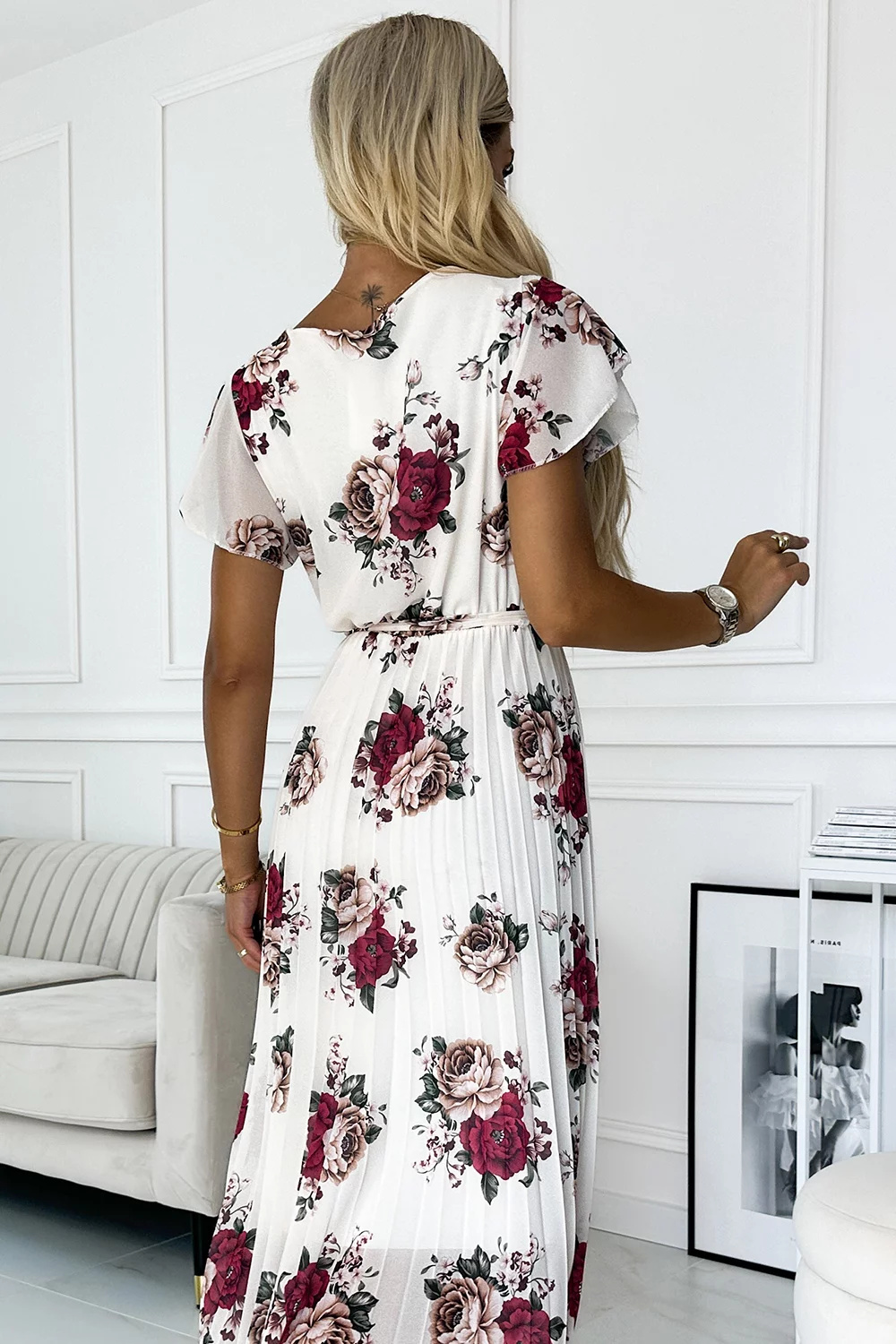 Lisa - plisowana sukienka w bordowe róże