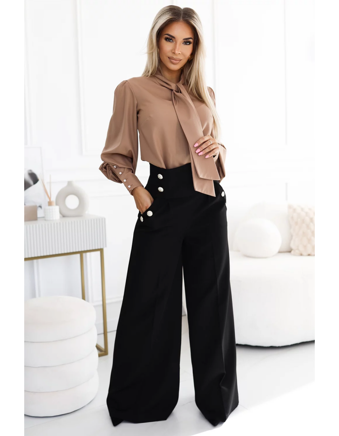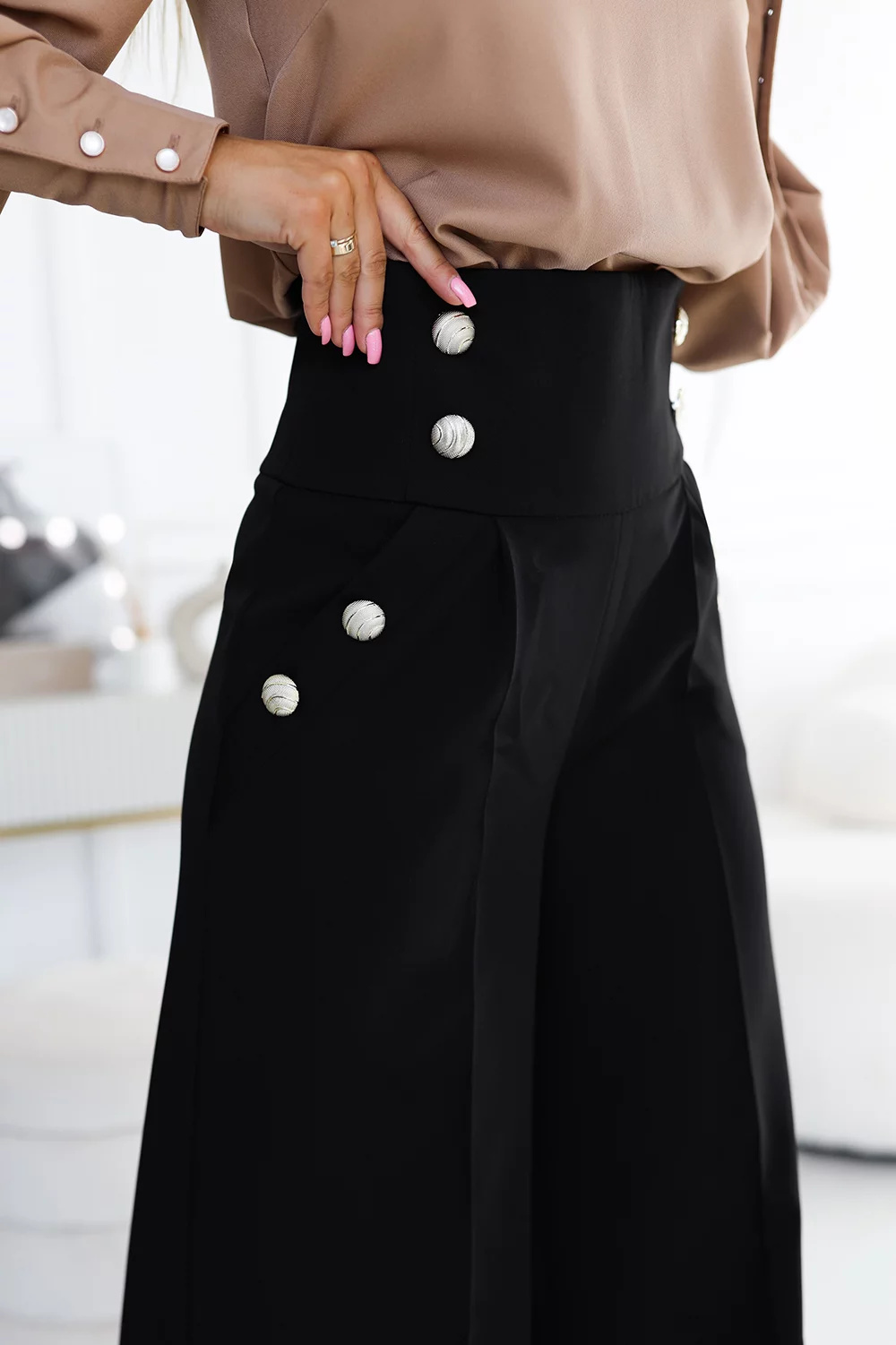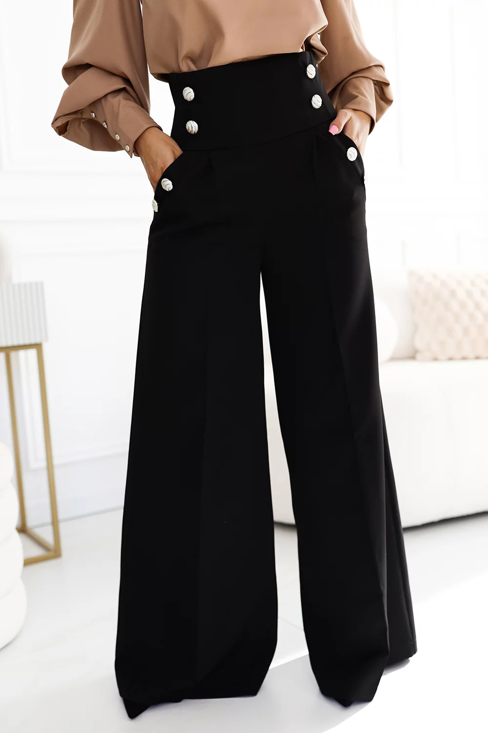 Eleganckie spodnie ze słotymi guzikami - czarne