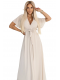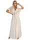 Elegantní béžové maxi šaty s překládaným výstřihem, lehkými rukávy a vázáním v pase. Lehká, ženská a ideální na svatbu, přijímání nebo oslavu.