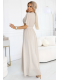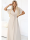 Béžové šifonové maxi šaty s překládaným výstřihem – Numoco Basic