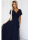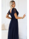 Dlouhé vzdušné šaty s výstřihem - tmavě modré