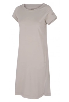 jasno - beżowym kolorze. Sukienka wyróżnia się