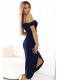Šaty Calie značky Numoco Basic – elegantní midi šaty v námořnicky modré barvě. Odkryté ramena, dekolt, řasení v pase a skrytý zip. Ideální na svatby, večírky a večerní výlety. Vysoká kvalita, evropská výroba.