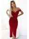 Smyslné midi šaty v bordó barvě od Numoco Basic. Má zavinovací výstřih, tenká ramínka, asymetrický rozparek a elegantní řasení. Ideální na večerní výlety a výjimečné příležitosti. Evropská produkce.