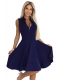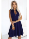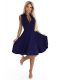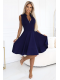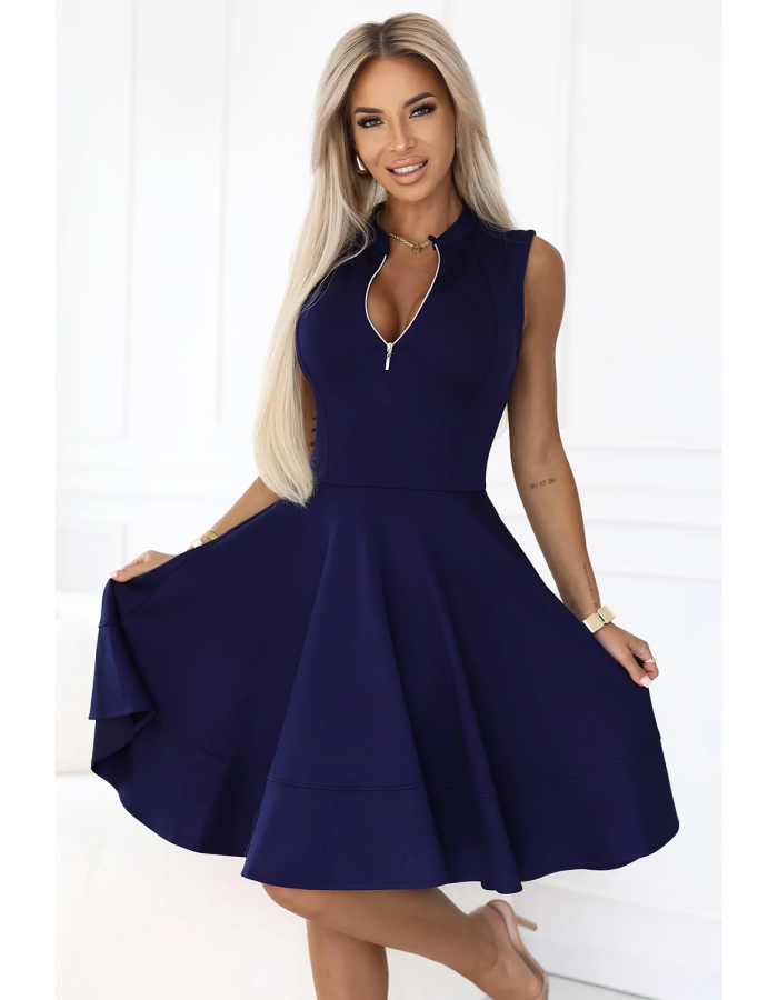 Elegancka granatowa sukienka z rozkloszowanym dołem i zamkiem przy dekolcie, która podkreśla talię i pięknie układa się w ruchu. Idealna na wesele, przyjęcie, randkę lub elegancką kolację – produkt marki Numoco, polska produkcja.