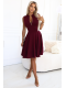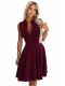 Elegantní bordó šaty bez rukávů s ozdobným zipem a rozšířenou sukní. Zdůrazňuje siluetu a spojuje moderní styl s klasickou elegancí. Ideální pro výjimečné příležitosti. Značka numoco. Polská produkce.