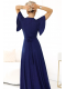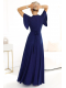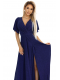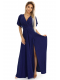 Elegantní dlouhé brokátové šaty s překládaným výstřihem – tmavě modré | Numoco