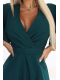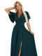 Jennifer – dlouhé zelené šaty s překládaným výstřihem a rozparkem