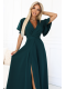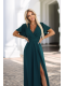 Jennifer – dlouhé maxi šaty v barvě lahvově zelené s překládaným výstřihem, volnými rukávy a vysokým rozparkem na noze. Polský produkt, značka Numoco.