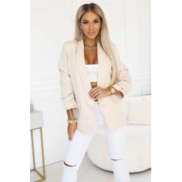 Ta luźna marynarka jest absolutnym hitem sezonu i podstawą każdej szafy kapsułowej. Niezależnie od tego, czy potrzebujesz eleganckiej marynarki do biura, czy narzutki na casualowy top i białe jeansy (jak na zdjęciu), model numoco basic zawsze wygląda stylowo. Kolor beżowy pozwala na łatwe łączenie jej z czernią, bielą, jak i z pastelowymi odcieniami. Inwestując w produkteuropejskiej produkcji, wybierasz odpowiedzialną modę, która pozostanie z Tobą na lata. Ożyw swoją garderobę tą klasyczną marynarką!
