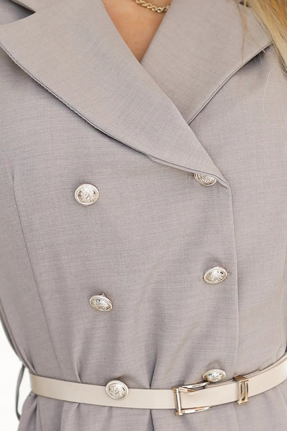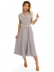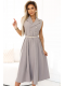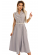 Elegantní košilové šaty midi se zlatými knoflíky a páskem - šedobéžová Velikost: UNI