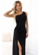 Černé, lesklé maxi šaty na jedno rameno s efektním rozparkem na noze jsou kvintesencí elegance a smyslnosti. Ideální na večerní výlety a výjimečné příležitosti. Produkt polský. Značka Numoco.