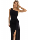 Asymetrický střih na jedno rameno jemně odhaluje linii ramen a efektní rozparek na noze dodává smyslný charakter. Jemné řasení v pase zdůrazňuje ženskou siluetu a zároveň zajišťuje pohodlí při nošení.