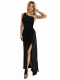 SELENA – Nádherné černé šaty na jedno rameno s třpytkami a rozparkem na noze