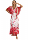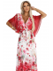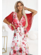 Lehká maxi šaty s překládaným výstřihem, širokými rukávy a květinovým vzorem – červené růže