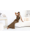 Elegantní večerní šaty značky Kocula v jedinečném odstínu mocha mousse jsou ideální volbou na svatbu, galavečer nebo výjimečnou událost. Přiléhavý střih typu mořská panna krásně zvýrazňuje ženskou siluetu a elastický materiál zajišťuje pohodlí a volnost pohybu.