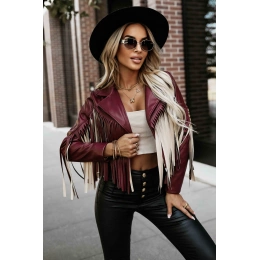 Burgundowa ramoneska z frędzlami wykonana z wysokiej jakości ekoskóry. Styl boho i rock chic w jednym – idealna do odważnych stylizacji na co dzień i na wieczór.