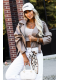 Stylová ramoneska v odstínu cappuccino ušitá z měkké, příjemné na dotek ekokůže. Kratší střih krásně zvýrazňuje pas a asymetrický zip a pásek dodávají městský charakter. Je to model, který vypadá skvěle jak s džíny a tričkem, tak i se šaty – ideální na chladnější večery.