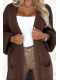 Stylový a pohodlný dlouhý kardigan v čokoládové barvě je nezbytností pro chladnější dny. Volný střih, praktické kapsy a měkká pletenina zajišťují, že se skvěle hodí jak pro ležérní, tak i elegantní stylizace. Přehoď ho přes top, šaty nebo košili – a je to!