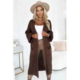 Długi kardigan z kieszeniami – czekoladowy | Numoco Basic