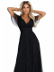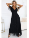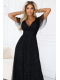 Elegantní černé večerní maxi šaty z lesklého materiálu, s výstřihem do V a lehkými rukávy. Rozšířený spodní díl se krásně pohybuje při tanci, vytváří efektní stylizaci na svatbu, ples nebo banket. Značka Numoco Basic. Evropská produkce.