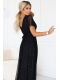 Elegantní dlouhé večerní šaty v černé barvě jsou nabídkou značky Numoco Basic, vytvořené s ohledem na výjimečné příležitosti. Lesklý materiál s jemným třpytivým povrchem krásně odráží světlo, což dodává kreaci jedinečný půvab. Výstřih ve tvaru písmene V jemně zvýrazňuje poprsí a lehké, vzdušné rukávky dodávají celkovému vzhledu lehkost a eleganci.