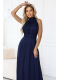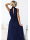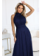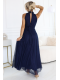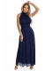 Veronica je výjimečná nabídka pro ženy, které touží vyniknout elegancí a třídou při těch nejvýjimečnějších příležitostech. Dlouhé maxi šaty v barvě námořnické modré byly vyrobeny z lesklého materiálu, který se krásně třpytí na světle, podtrhující elegantní charakter kreace. Vrchní část s efektní stojáčkem a jemnými řaseními opticky zeštíhluje postavu, zatímco lehce rozšířený spodní díl dodává celku lehkost a výjimečný půvab.