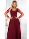 Elegantní bordó maxi šaty s tylovými rukávy - smyslná klasika od Numoco