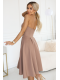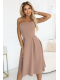 Elegantní béžové šaty Vivienne v midi délce okouzlují rozšířeným střihem, korzetovým vrškem a ženskou linií. Ideální pro výjimečné příležitosti - zvýrazňuje postavu a dodává každému outfitu eleganci. Značka numoco. Polská produkce.