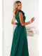 Elegantní maxi šaty v odstínu lahvově zelené s charakteristickou růží na rameni a smyslným rozparkem, ideální na svatbu, galavečer a výjimečné příležitosti. Model zdůrazňuje siluetu, krásně pracuje v pohybu a okouzluje butikovým provedením. Polská produkce. Značka Numoco.