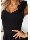 Výstřih ve tvaru písmene V prodlužuje linii krku a přiléhavý vršek modeluje pas, čímž vytváří efekt proporcí typu přesýpacích hodin. Trojrozměrná růže na rameni nejen dodává charakter, ale také krásně zvýrazňuje linii klíčních kostí a ramen. Tento model je ideální černé maxi šaty zeštíhlující postavu, navržené tak, aby každá postava vypadala elegantně a žensky.