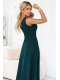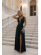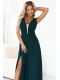 Elegantní dlouhé zelené maxi šaty s hlubokým výstřihem a rozparkem na noze. Zdůrazňuje pas, zeštíhluje postavu a krásně se pohybuje. Ideální na svatbu, ples a každou výjimečnou příležitost. Značka Numoco - polská výroba.