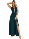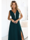 Elegantní dlouhé maxi šaty s výstřihem a rozparkem - zelené